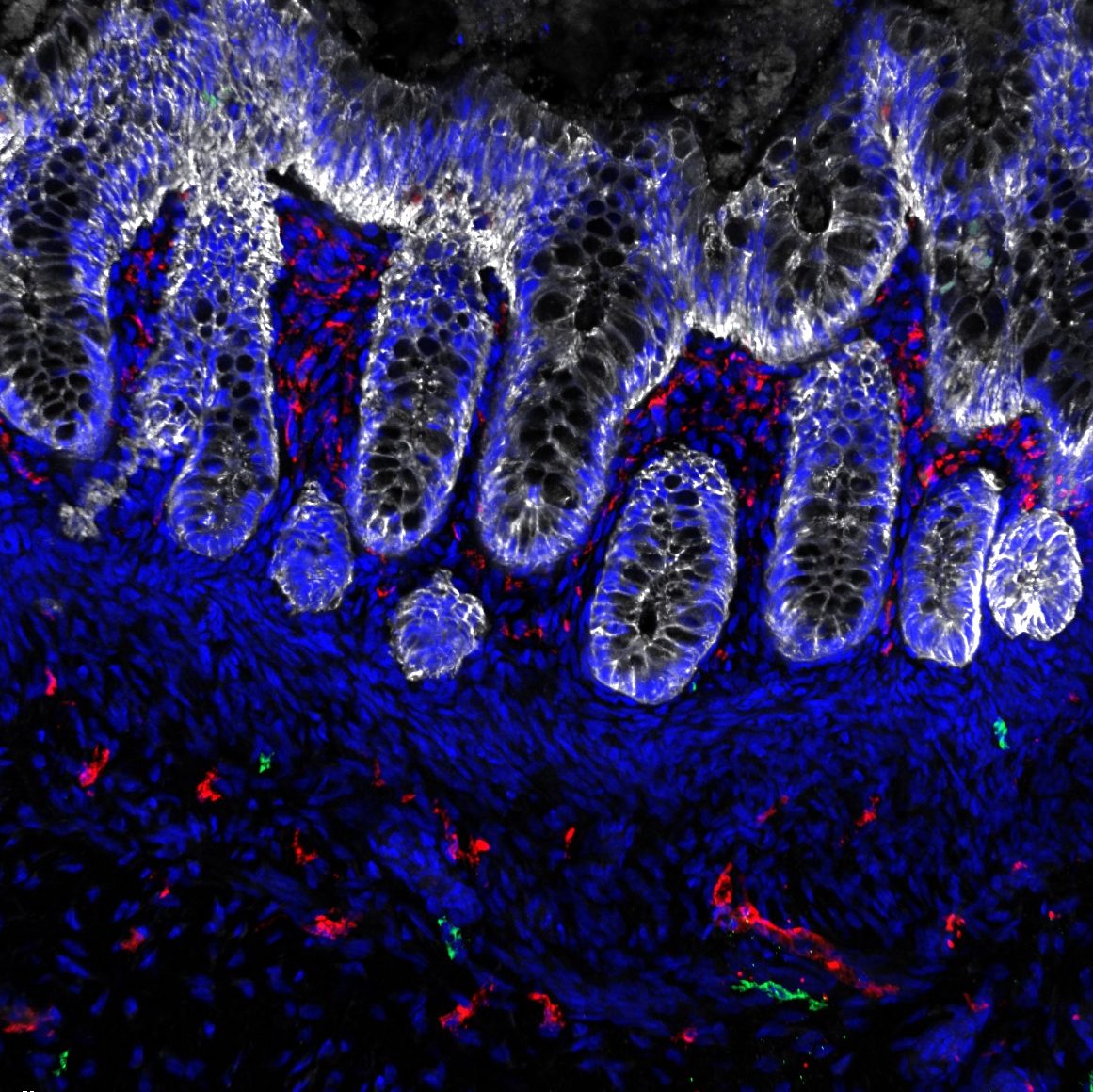 Unlike traditional organoids composed solely of epithelial cells, our models include supporting mesenchymal and immune lineages, creating a more physiologically complete system that captures the complex cell–cell interactions of the colon. Using these systems, we aim to better understand how the gut develops and how those developmental programs are disrupted in disease.